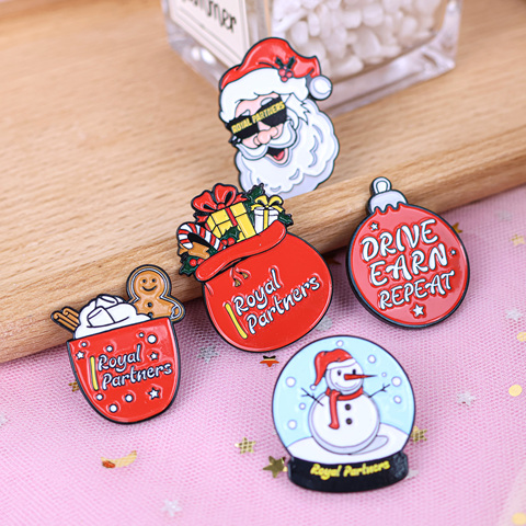 هدية عيد الميلاد تخصيص دبوس معدني مخصص شارات دبوس المينا الصلبة عيد الميلاد مجموعة لطيف الكرتون معدن طية صدر السترة شارة دبوس